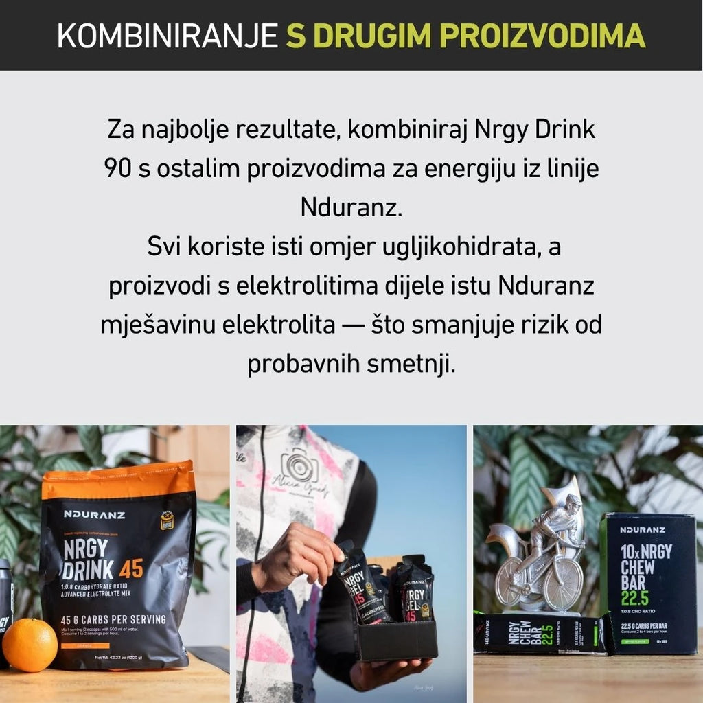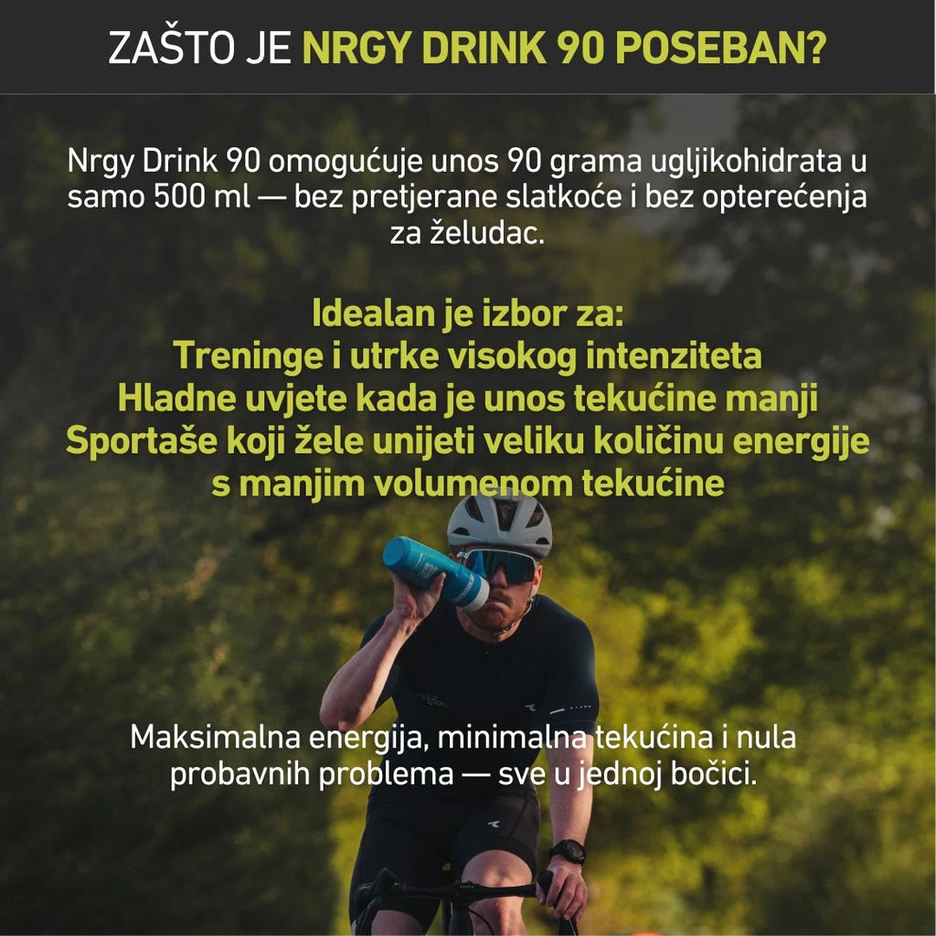 Nrgy Drink 90 je namijenjen elitnim sportašima koji trebaju unositi 90 grama ugljikohidrata na sat, ali ne žele piti previše vode.